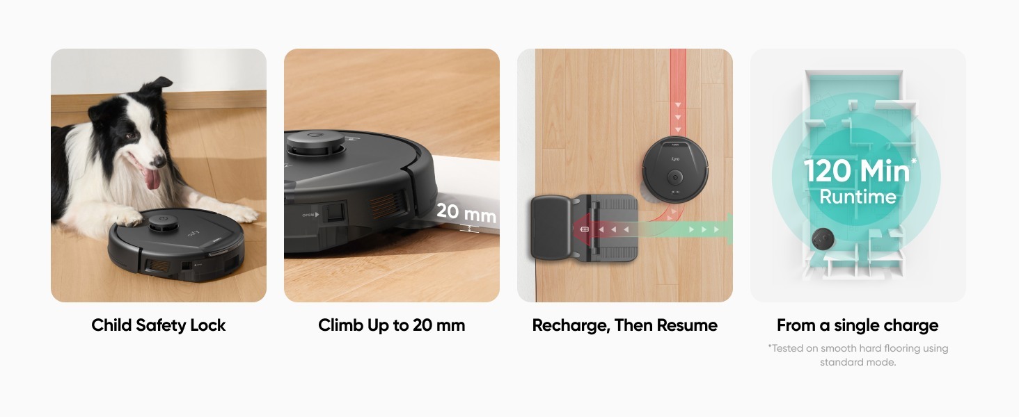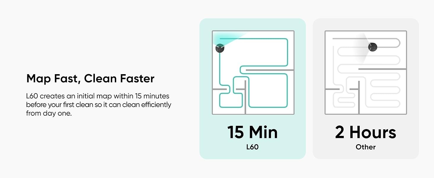 - Customizable AI.Map 2.0: The eufy robot vacuum L60 use the app to select specific rooms to clean, set up No-Go Zones, and use Multi-Floor Mapping for homes with more than one floor.