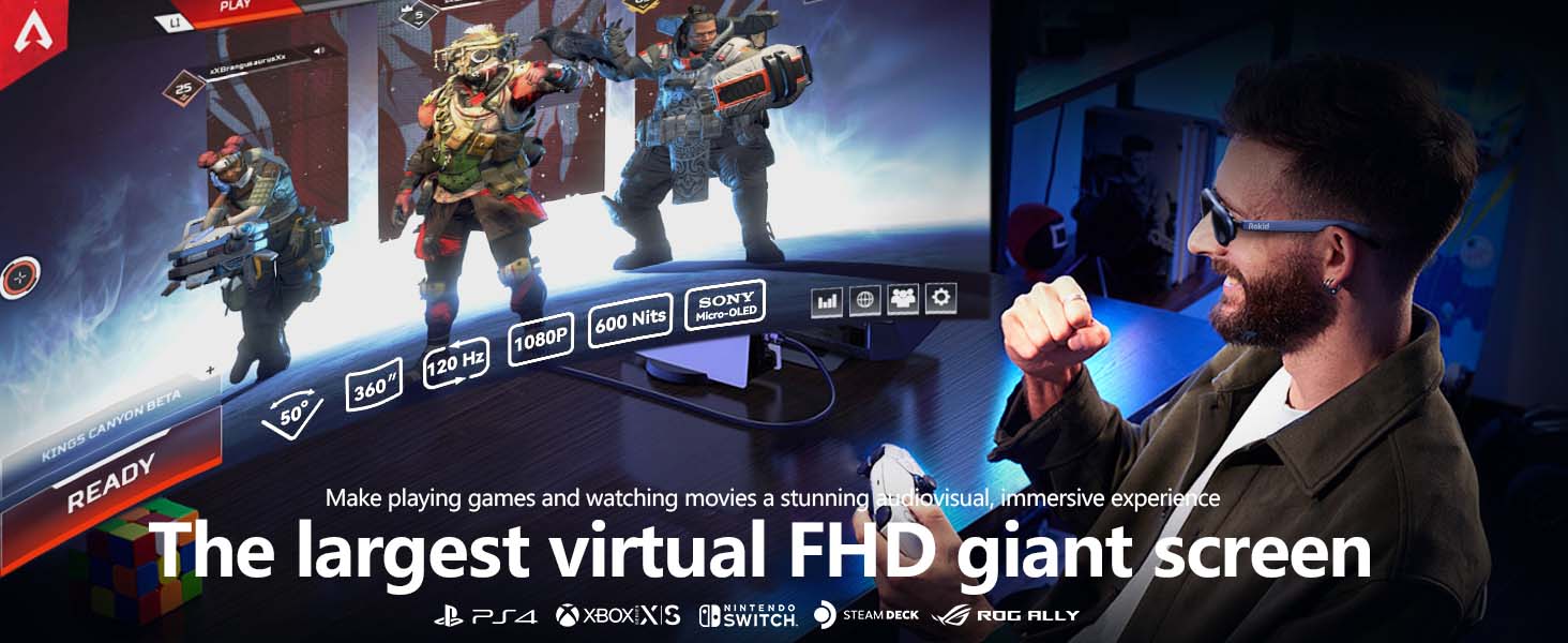 Rokid AR Joy Pack AR Glasses, Smart Glasses Max with Station, 360" Micro-OLED Display, Google Play, Media Streaming, HDCP Support & Cloud Gaming, Console, Android, iOS, Windows Compatible